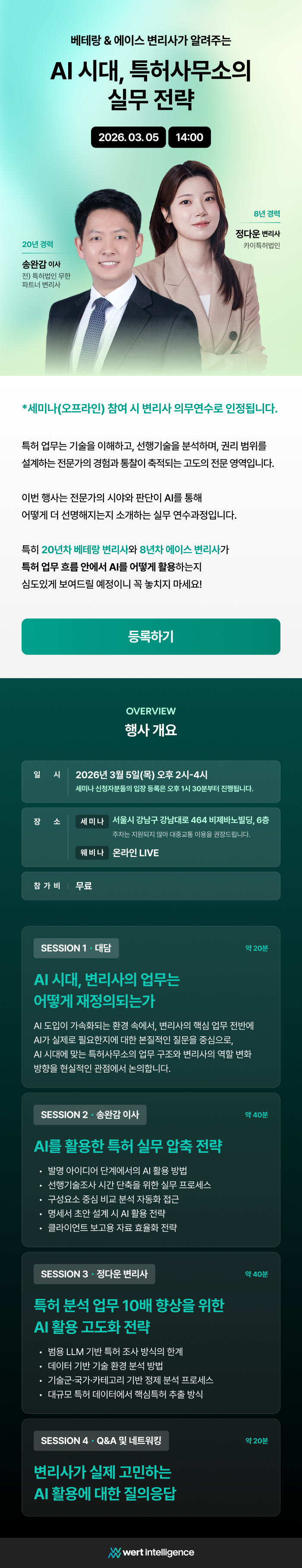 일 시 : 2026. 3. 5.(목), 14:00~16:00 장 소 : 서울시 강남구 강남대로 464 비제노바 빌딩, 6층 참 가 비 : 무료 신청방법 : 사전신청 바로가기 (오프라인 - 선착순 60명, 온라인 - 제한없음)