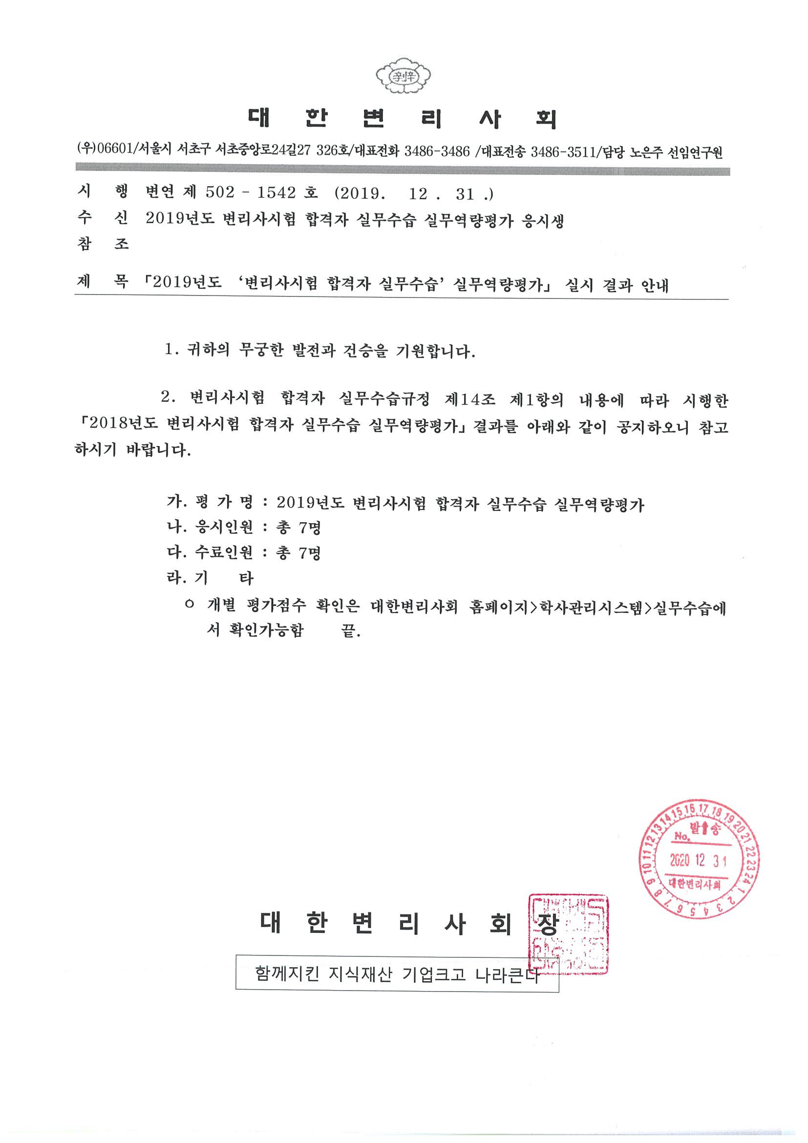 2019년도 ‘변리사시험 합격자 실무수습’실무역량평가 실시 안내