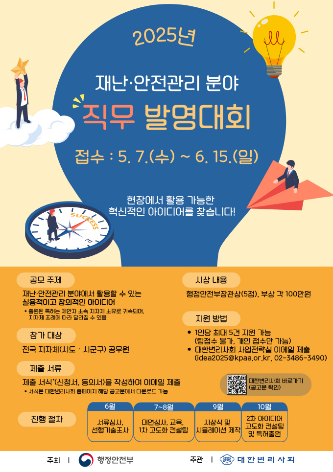 행안부, 지자체 공무원 대상 ‘재난·안전관리 분야 직무 발명대회’ 개최